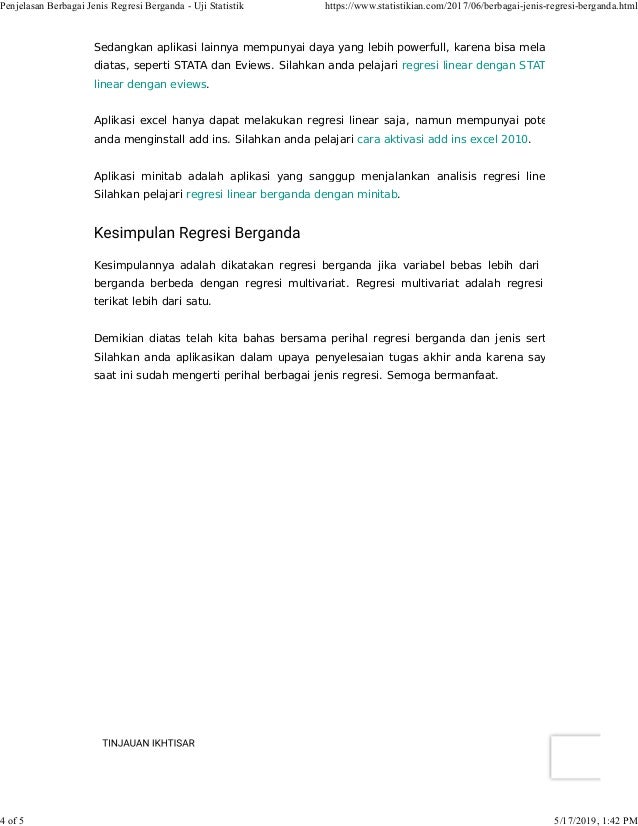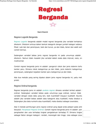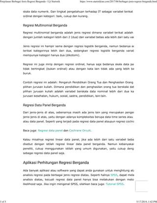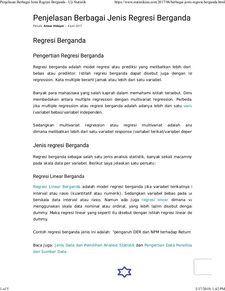 Penjelasan Berbagai Jenis Regresi Berganda Uji Statistik Pdf 1